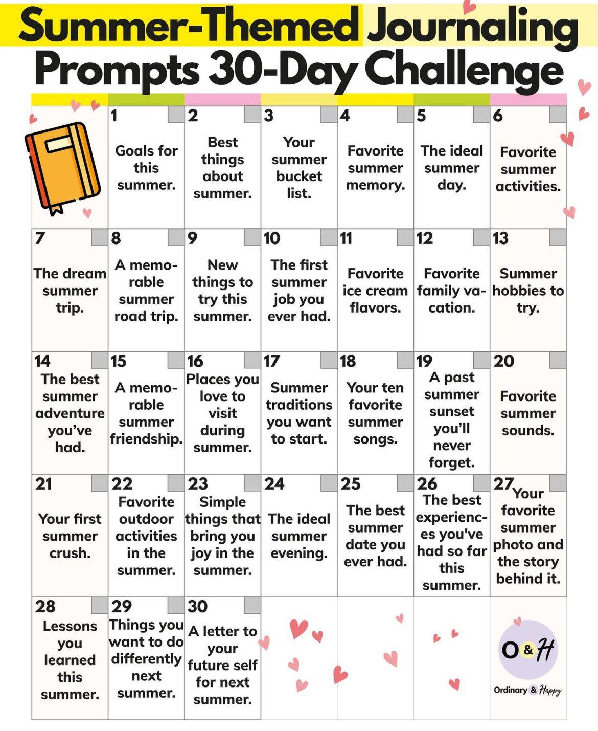 fun Summer writing prompts I found on Pinterest
